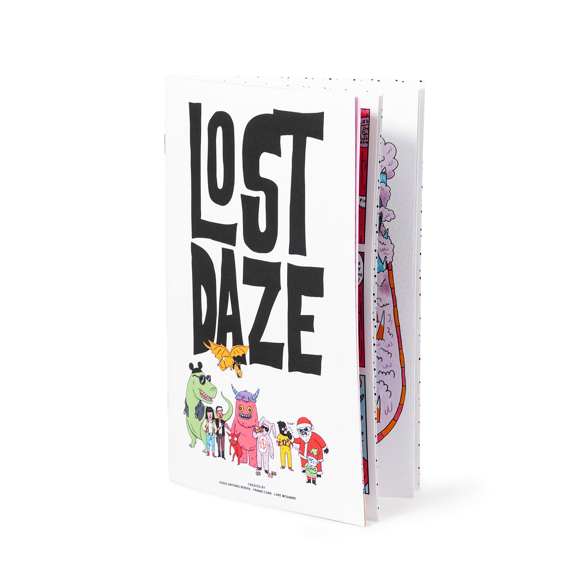 The Lost Daze comic book invites you inside the minds of IHC founder Franki Chan, Creative Director Jesus Rivera, and Illustrator Luke McGarry! For the inaugural issue, the trio brings to life a sea of characters many of which, were originally created as mascots for parties thrown by IHEARTCOMIX back in the day.